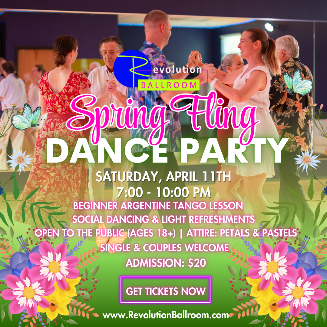 BUY TICKETBring on the Blossoms! Our Spring Fling Ballroom Dance Party is Saturday, April 11th 🌷