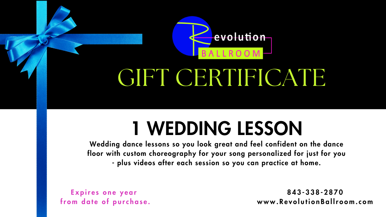 Wedding Lesson prices are per couple. Wedding Lessons are 50 minutes and are scheduled by appointment Monday – Friday from 3-9 PM.