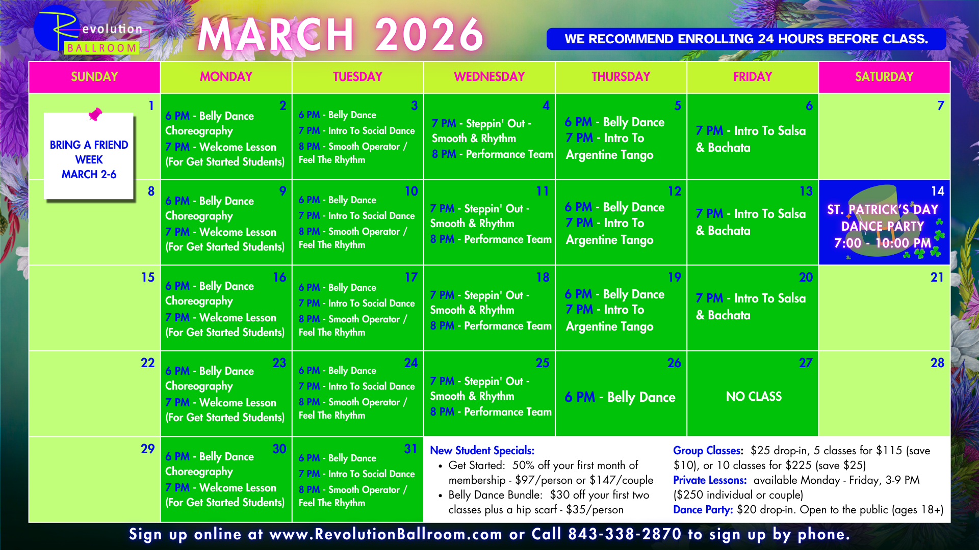 Share the joy of dance! Bring a friend to class and enjoy a free class for both of you.