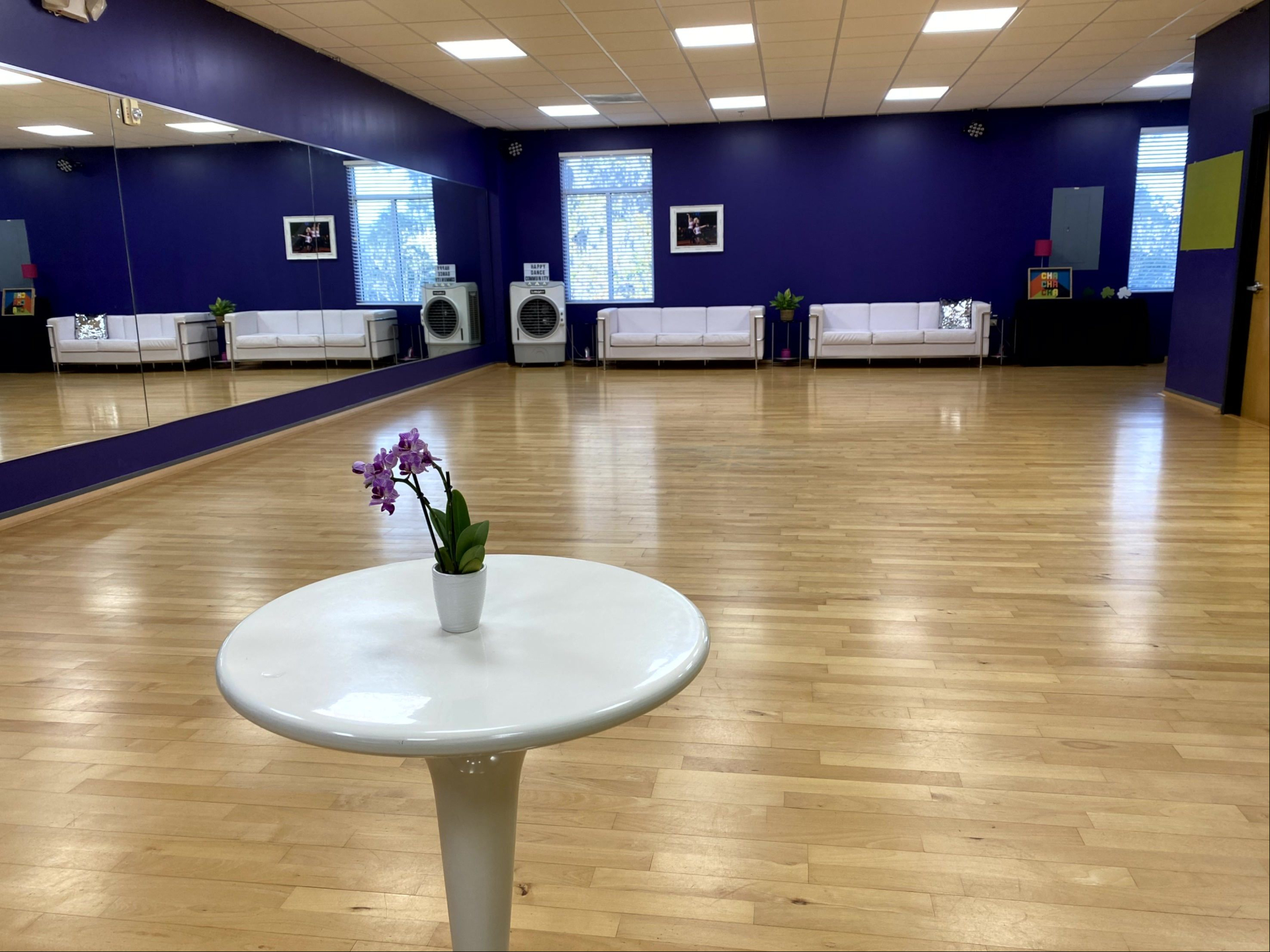 Ideal for yoga workshops, martial arts classes, fitness sessions, dance rehearsals, choreography practice, and specialty events, our studio offers an open layout designed for movement and creativity.